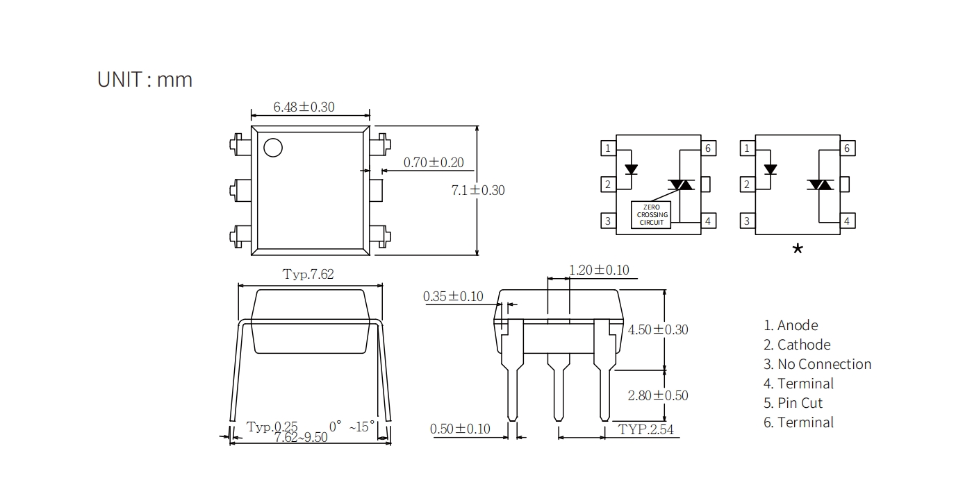 Product Package size(LxWxHmm) VF(V) VDRM(Max) (V) VTM(V) VINH(V) IT (rms)(mA) IFT(mA) Topr (Min) (degC) Topr (Max) (degC) Viso (Vrms)